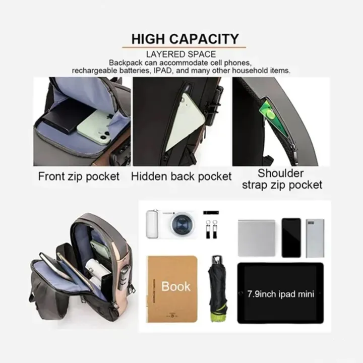 Anti-Theft Zippers: Men’s Anti-Theft Cross Body Sling Bag to protect your belongings from theft.